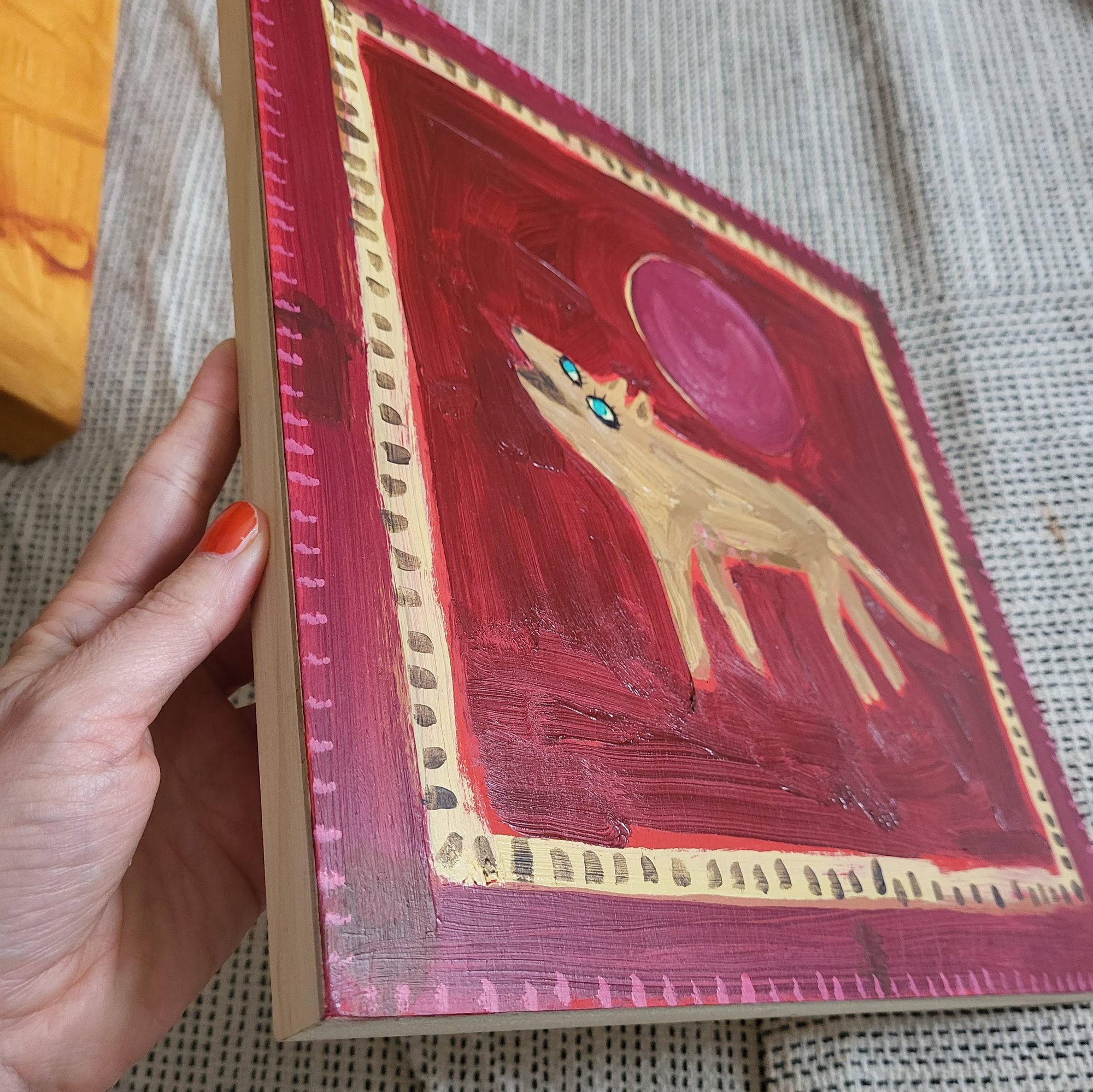 Animalia is an ongoing collection of paintings inspired by the quiet magic that animals have carried through story, myth, and memory. In many early cultures — including my own nordic heritage — animals were seen as guides, protectors, even godlike beings woven into the fabric of everyday life. These pieces draw from that lineage of folk tradition and symbolism, celebrating the creatures who have always held a place in our imaginations. Painted with a sense of play, reverence, and intuition, Animalia invites you into a world where animals speak, listen, and remind us of the ancient threads connecting all living things.